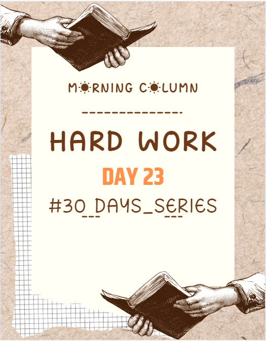 मैं मेहनत को कार्यों की सफलता से परे देखता हूँ। खाना बनाना मुझे जीवन का सबसे मेहनत वाला काम लगता है। एक स्वादिस्ट भोजन, मेहनत के बगैर बन ही नहीं सकता। अच्छा खाना बनाने वालों को मैं बहुत मेहनती मानता हूँ। जो भी लोग सफाई करते हैं वो भी अत्यंत मेहनती होते हैं। दुनिया समझें या ना समझें उन्हें अपने काम की गरिमा का एहसास होता है इसलिए घर हो या गली उसे साफ़-सुथरा रखने में श्रम करते है। गज़ब मेहनती होते हैं सामान बेचने वाला। सामन बेचने वाला ग्राहक के नखरे से लेकर खरी-खोटी तक सुनता है पर सामान बेचते वक़्त अपने परिश्रम में कोई कमी नहीं रखता।